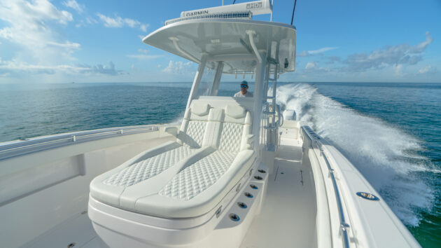 In all cases, as we nestle in at the helm, we’re expecting good things. After all, these boats hail from South Florida, where people think nothing of charging 60 miles offshore to reach their favourite fishing spots, so it needs to take good care of you.