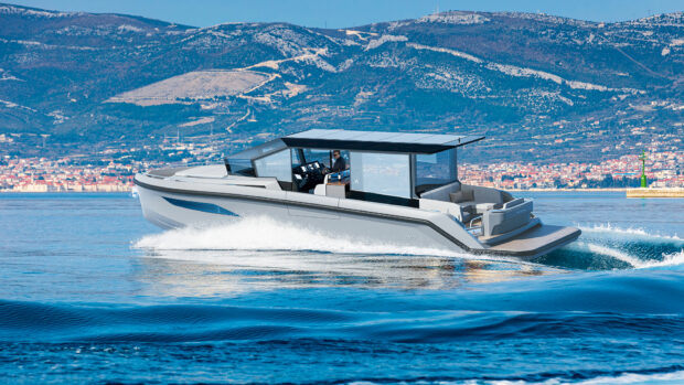 Steeler B62 Beach Club: You can drive this boat from the bow on a leather sofa