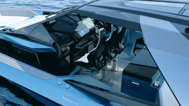 As a very light, very stiff and very quick boat, there is of course the potential for some firm impacts, so SAY has helped compensate for that with an extremely fine entry and a set of adjustable impact-mitigation seats. But further aft, the feelgood openness of the deck remains very much intact.