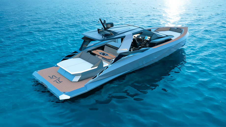 That said, it still remains true to the SAY DNA. Built using a carbon fibre epoxy sandwich boat hull structure, it has a draft of 87cm and a dry weight of just 4.5 tonnes, which is truly extraordinary for a boat of this length. And with the option of Volvo Penta V8 6.2L 430s (rather than the standard D4-320s), operating through sterndrives, married up to a Petestep hull with a clever downward-pointing spray rail design, that puts the 50-knot mark well within reach.
