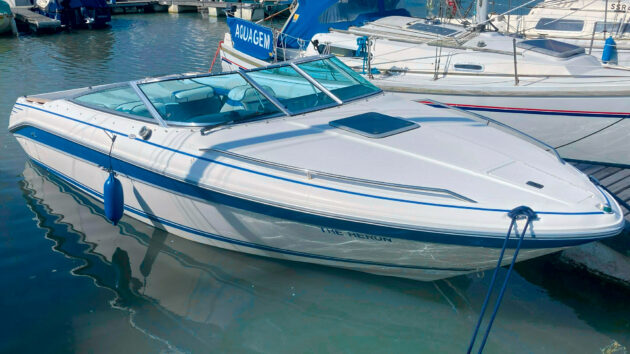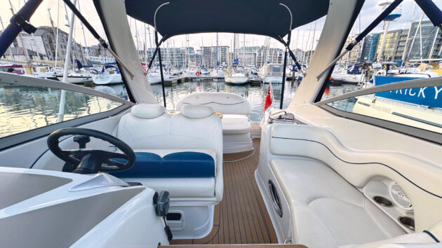 Pretty much all of these went out with a single Mercruiser 350 Magnum beneath the cockpit sole. That 350 refers to cubic inches rather than horsepower, what we would call 5.7 litres. It’s about 300hp, which is ample, giving a top speed in the high 30-knot region.