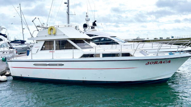 Despite what some might claim, Tom Murrant, ex-aircraft engineer and founder of Sealine International, actually penned this one. A generous 9ft 6in beam gives space for both a decent cockpit and proper side decks. Sealine was always at the vanguard of design, which is why this boat has a transom door where many boats of this age don’t.