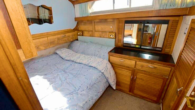 The owner’s cabin enjoys plenty of wood cabinetry and its own ensuite facilities