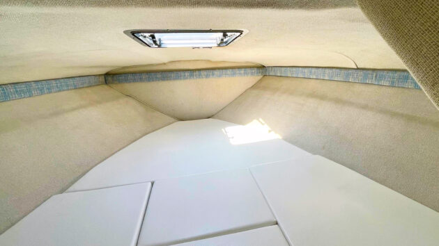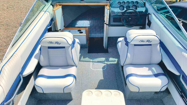 Sea Ray offered a Mercruiser 205hp 4.3 litre V6 or the lusty 5.7 litre V8 fitted to this boat, which produced 260hp when it was new for a top speed somewhere up toward 40 knots. It may have lost a pony or two in the intervening 30+ years, but if it’s in good shape generally, there should still be ample performance.