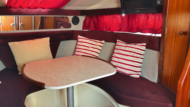 Convertible dinette is one of two double berths squeezed into this compact family cruiser