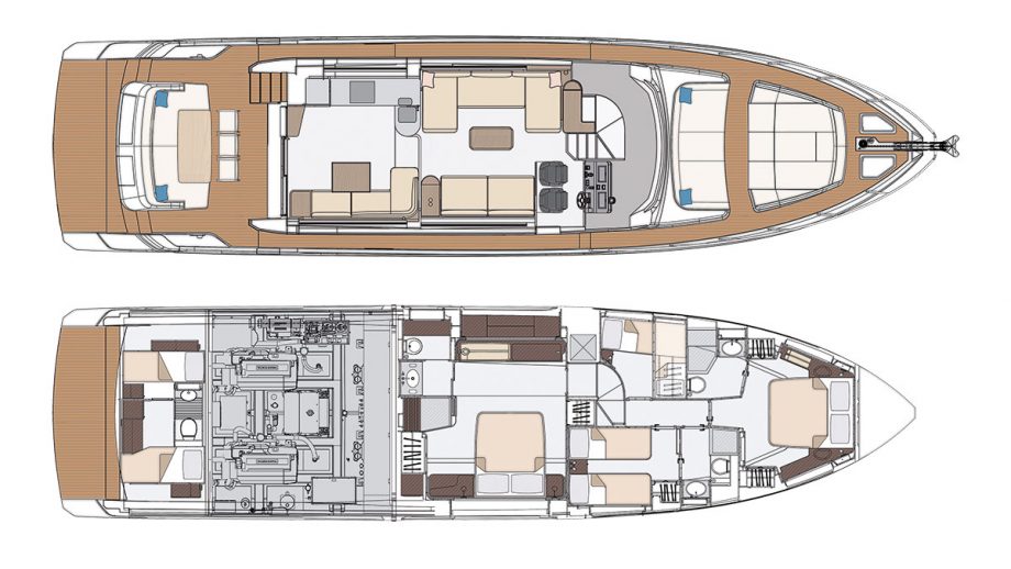 The lower deck is more conventional, and comes with fewer options. None, in fact. But that might be because the Azimut 68’s builders don’t think you’ll be able to come up with any suggestions for worthwhile improvements and, broadly, I would be inclined to agree.