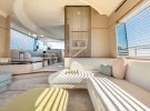 The same clever thinking is also on display on the foredeck, where what looks at first to be a fairly simple sunbed-and-sofa arrangement can be quickly transformed into dinette-style seating, as the aft section of the sunbed hinges forward to form another sofa, complete with backrests.
