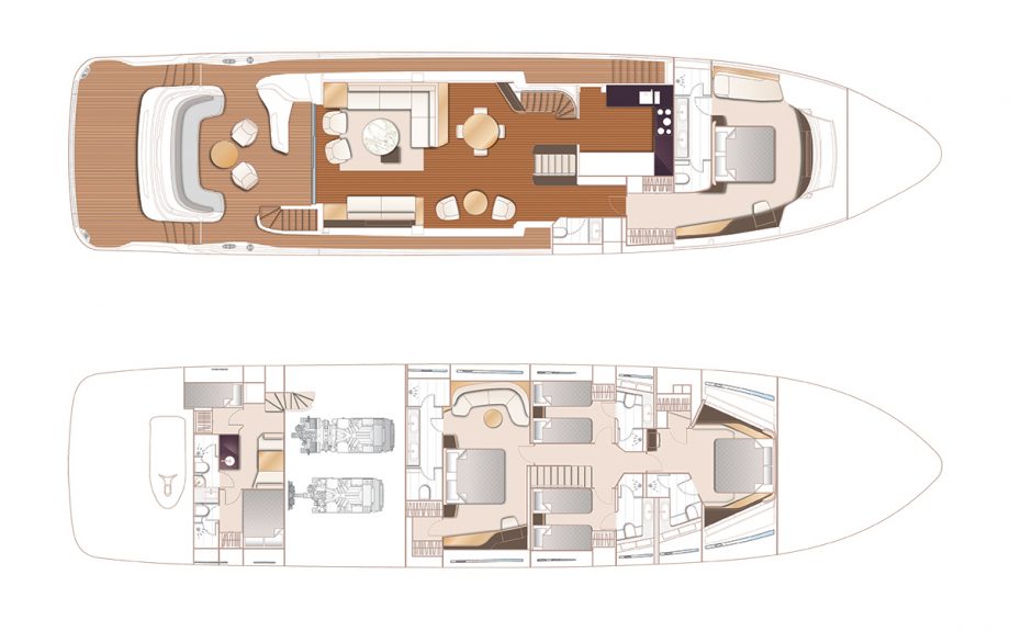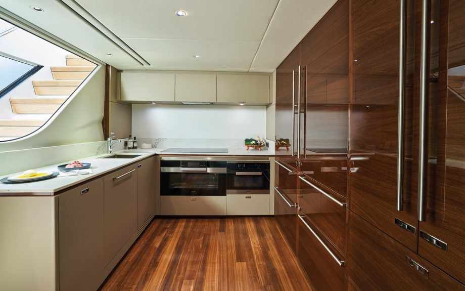 Princess also offers plenty of choices on the main deck, whose forward section can be fitted out either as an open-plan galley and dining room, or as a private saloon and cinema.
