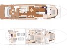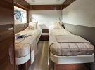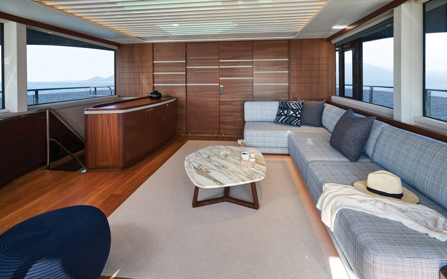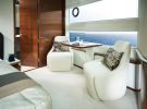 On a sunny day, the undoubted star of the show is the flybridge, which has marvellously elevated relaxation areas forward and aft, with a variety of furnishing possibilities, including the option of a hot tub overlooking the bow. The cosy private skydeck saloon behind the helm station is such a pleasant place to sit that the main saloon below could start to feel like an extravagance.