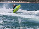 The O’Brien Screamer seemed to catch every wave going and spent most of its time airborne with riders dangling off it and at every possible angle – and a few impossible ones!