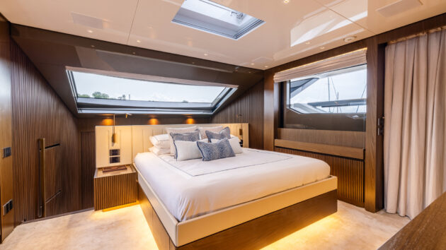 The main deck owner’s cabin enjoys exceptional space, light, quiet and privacy