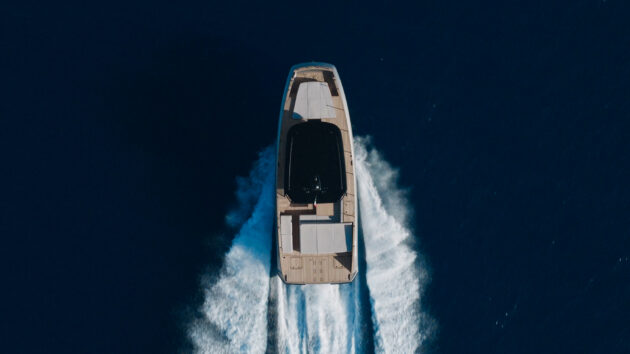 As if that weren’t enough, it also has an underwater foil roughly two thirds of the way back from the bow. This doesn’t lift it clear of the water, unlike Candela’s fully foiling P12, but it does raise it enough to reduce the wetted surface, cut drag and increase both speed and fuel efficiency by as much as 40%. It’s also claimed to result in a smoother, softer ride that ‘kisses’ the tops of the waves rather than pitching up and down over them. It’s a bold claim and one that we’ve got a chance to test for ourselves…