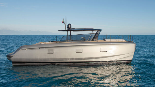 The BGF45 is narrow by cruising cat standards and skims across the surface on a drag- reducing foil