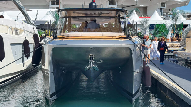 The central vee is there to stop waves slamming against the deep bridge deck that houses the forward owner’s cabin