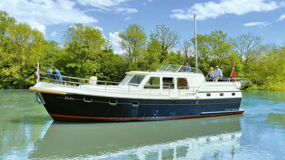 While Hebe is a 2002 model, sitting serenely on the Thames at Bray Marine Sales for a list price of £210,000, she is a very well-travelled boat, as owner Simon Dowden, a former pilot on the Thames, explains: “My wife, Jenny, and I bought Hebe in 2014. For the first two years, we kept her in the UK and then we crossed the Channel and went along the Seine to the French canals, living on the boat all the time.