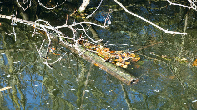 This large log was floating less than a metre from the boat. Not only could it damage the hull, but if it gets sucked into the propeller the repair bill could be substantial.