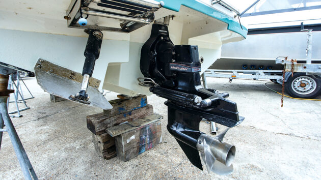 Trim tab up – This tab is fully up with the ram retracted. Now it’s not producing any lift, so the stern sits lower, keeping the bow high. Always leave tabs up and outdrive legs down after use to stop the rams getting fouled.