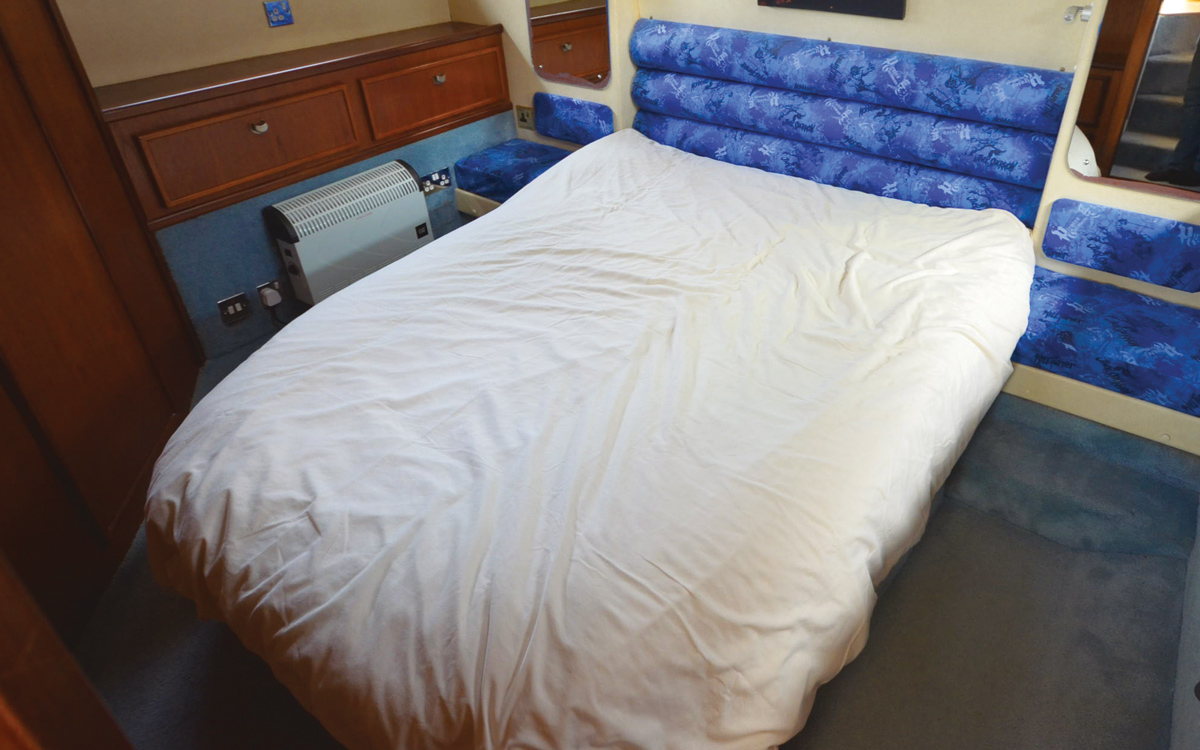 The defining characteristic of the Turbo 36 is that aft cabin. Occupying the full beam of the boat, it is more like a bedroom than a traditional master cabin, with a central double bed, en suite and masses of storage. At the other end of the boat, guests get vee berths in the fore cabin and use the day heads just outside, opposite the galley.